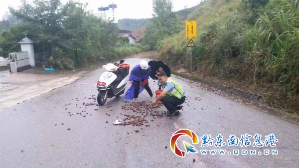 據(jù)悉,駕駛?cè)她埬臣易?a href="http://www.smqds.com/html/news/CityNews/sb/" target="_blank" class="keylink">施秉縣城關(guān)鎮(zhèn)沙坪村,正從雙井鎮(zhèn)親戚家采摘脆紅李回來。車上又是框、又是桶,本想多帶點李子帶回家給家人、朋友品嘗。可來到事發(fā)路段時,由于雨較大,路面濕滑,車上水果較重,避讓車輛操作不慎,導致所駕駛的摩托車是去平衡側(cè)翻在路中間,帶來的水果瞬間灑滿路面。所幸,人員沒有受傷,才有民警見到的一幕。