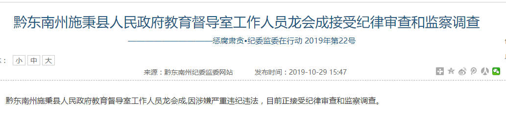 黔東南州施秉縣人民政府教育督導(dǎo)室工作人員龍會成,因涉嫌嚴重違紀違法,目前正接受紀律審查和監(jiān)察調(diào)查。(吳如貴)