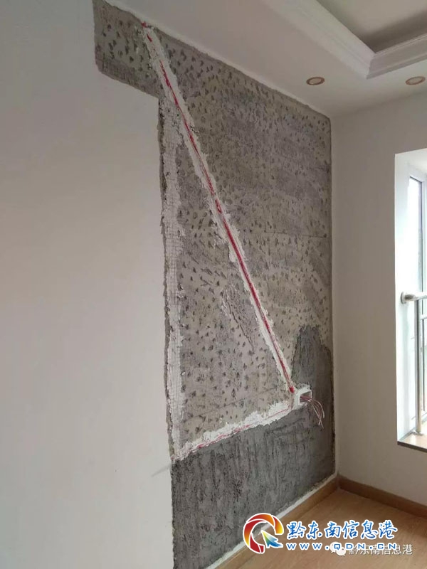黔東南信息港記者也聯系到了新陸國際的房開商,房開商表示,既然小區房屋出現了問題,他們愿意為該業主修繕墻體,但給予一定的賠償是不可能的,因為這不是他們的責任,業主譚先生家房屋出現墻體空心是他家裝修時打線槽造成的,并不是房屋本身的問題。