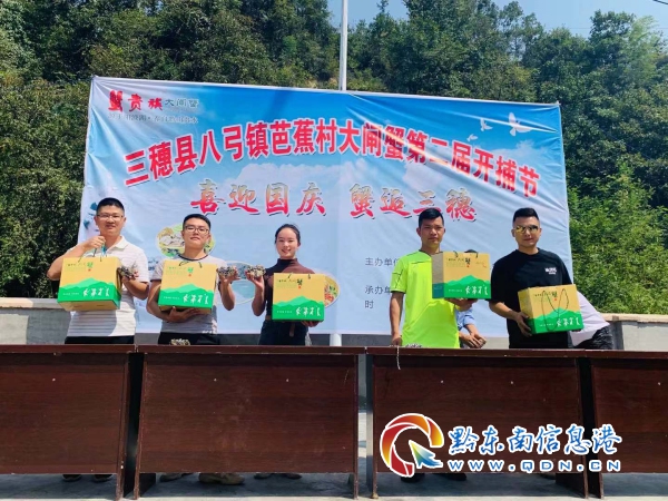 2019年9月28日,“喜迎國慶 蟹后三穗”三穗縣八弓鎮芭蕉村蟹貴族大閘蟹第二屆開捕節在老鄉們的陣陣掌聲中拉開帷幕。作為由州投資促進局、三穗縣政府、縣投資促進局引進的扶貧項目,大閘蟹養殖業的到來,改變了芭蕉村民的生活,令村民和貧困戶們在金秋時節喜獲豐收。