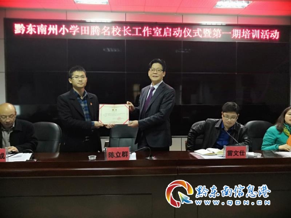 儀式上,臺江縣教科局師培中心楊再英主任宣讀州教育局文件《關于公布我州中小學首批名校長工作室主持人的通知》;臺江縣教科局楊再成副局長為田騰名校長工作室授牌;貴州省陳立群名校長領航工作室向黔東南州小學田騰名校長工作室捐贈66本校長專業成長圖書;田騰校長介紹工作室建設的基本情況。
