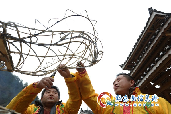 本網(wǎng)訊 正月里,年味濃。每年正月十五,臺江縣人民都有舞龍燈,鬧元宵的習俗。隨著元宵節(jié)臨近,臺江縣各苗寨的村民們忙著制作彩龍和花燈,為元宵節(jié)“舞龍噓花”做準備,用傳統(tǒng)民俗迎接元宵。