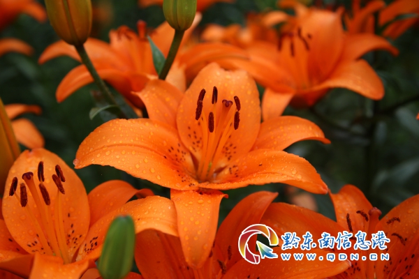 園內一朵朵橙色百合花花開正艷,像拉丁舞蹈般熱情似火、激情澎湃,令人心醉神迷。美不勝收的景色讓游客流連忘返,慕名而來的游客穿梭在百合園中紛紛拿起手中的手機和相機拍照留念。