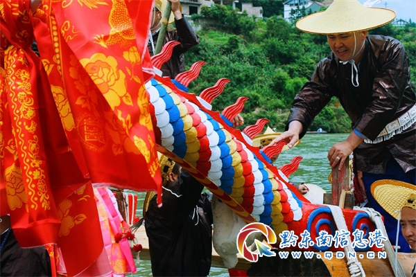 施洞鎮(zhèn)小河村的楊源是他們村龍舟的一名橈手,他說:“龍舟節(jié)是我家鄉(xiāng)一個(gè)非常盛大的傳統(tǒng)節(jié)日,今天清水江沿岸各個(gè)村寨的龍舟都聚集到了塘龍,一起過節(jié)。我常年在外打工,每年我都會在龍舟節(jié)之前趕回了家鄉(xiāng),與父老鄉(xiāng)親們一同歡慶龍舟節(jié)。”