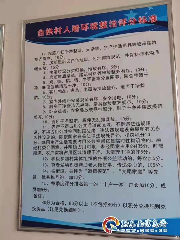 “太謝謝駐村的黨員干部了,我們把自家衛生搞好了,方便了自己,還有積分獎勵!你們看我這屋頂也翻新了,門口的路也整平了,屋頭也理得整整齊齊的,年底我又可以兌換一批生活用品了,太謝謝了!”臺拱村王安寶開心地笑了。