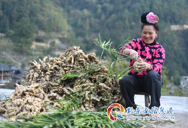 今年村民收獲的53萬余斤大肉生姜,通過訂單銷售的方式銷往迪拜等海外城市,帶動苗族群眾尤其是貧困戶增收。(蔡興文)