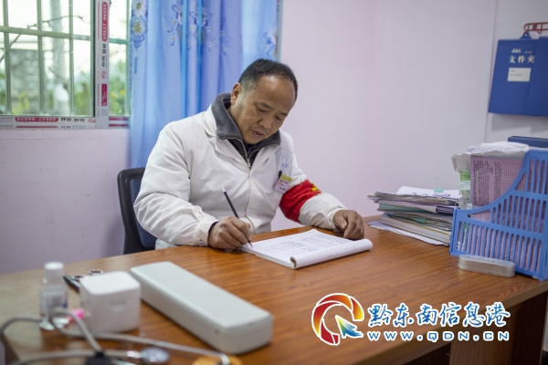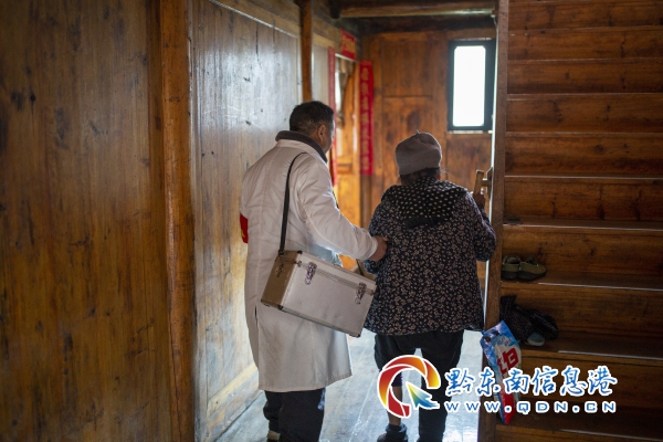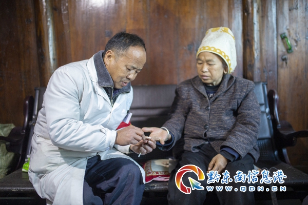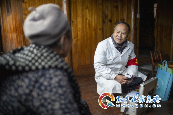 本網訊 持續的陰雨天迎來了久違的太陽,在方召鎮向陽村歹忙寨,一位穿著白大褂的中年男子在村里跑上跑下,他左手提著貧困戶的資料,右肩膀背著醫療箱。眼下,他又敲響了農戶的門。