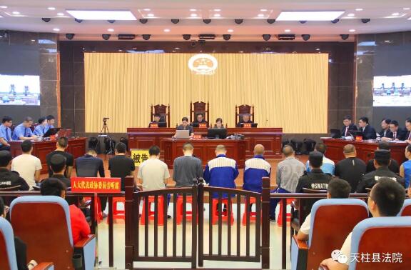 5月27日,天柱縣法院公開(kāi)開(kāi)庭審理邊某等18人涉黑案。天柱法院院長(zhǎng)姚本宙擔(dān)任審判長(zhǎng)主審,天柱檢察院檢察長(zhǎng)謝德錳出庭支持公訴。