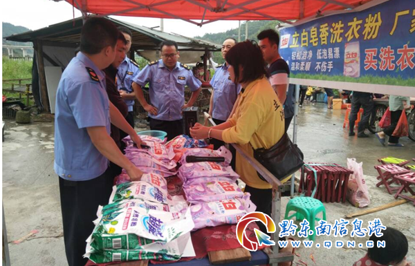 5月28日上午,該局接到天柱某立白洗衣粉經銷商舉報稱,該縣遠口鎮市場上有1個攤點銷售假冒立白洗衣粉,要求市場監管部門進行查處。