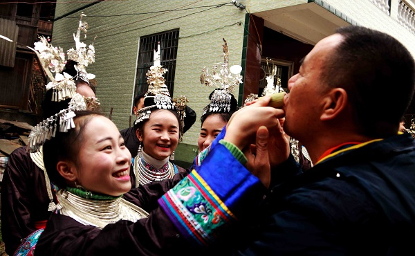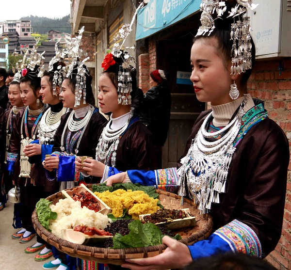 當(dāng)日下午,頂洞村侗族同胞用傳統(tǒng)習(xí)俗,在寨門舉行“攔路”敬酒,在“風(fēng)雨橋”上“攔路”贈紅鴨蛋,雙迎賓客進村入寨,品侗家美食,喝侗族美酒,賞侗寨風(fēng)土人情。家家戶戶熱情好客,屋里屋外喜氣洋洋,整個村寨,洋溢著濃濃一派祥和、喜慶、歡樂的新春佳節(jié),全村寨的男女老少,身著盛裝,頭戴閃亮銀飾,齊聚踩歌堂廣場,圍圈轉(zhuǎn)圈,“哆嘎多耶”踩歌堂,場面宏大、氣氛熱烈,熱鬧非凡,超級震撼,吸引了省內(nèi)外游客前來旅游觀賞與拍攝。