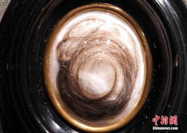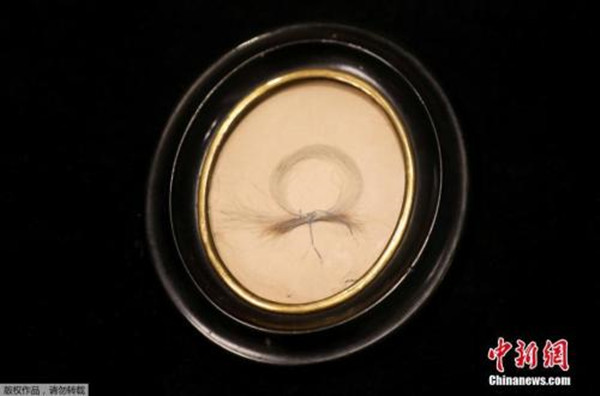 這縷頭發用一根絲線固定,裝在一個19世紀的橢圓形框架中。