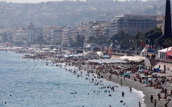 6月28日,人們在法國南部城市尼斯海灘消暑。新華社發(雷米·于昂攝)