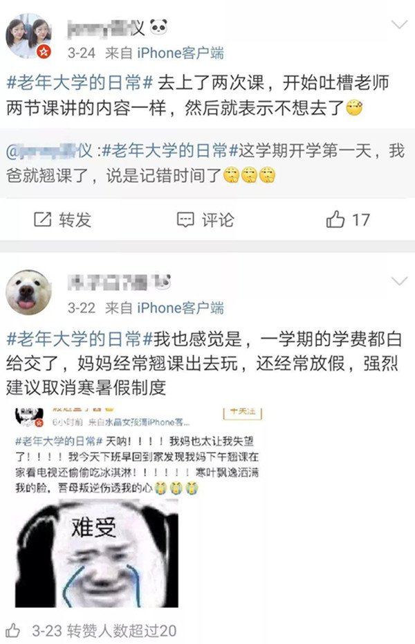 隨后,小編又好奇地點進了#老年大學的日常#這個“魔鬼”話題,結果哈哈哈哈哈哈哈我笑到室友把我趕出家門。