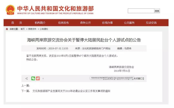 此前,自2011年6月28日,上海、北京、廈門三個城市率先開放赴臺自由行以來,一共開放了5批47個城市。
