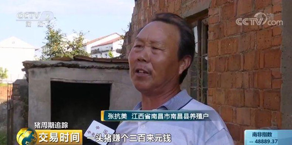 江西省南昌市南昌縣養殖戶張抗美:以前我最多養過5頭豬,養豬不賺錢,一頭豬賺200、300元。可每天打工最少能賺150-180元,養一頭豬一年才賺200、300元,打工做兩天,可以賺到一年的一頭豬錢。