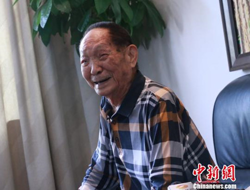 袁隆平9月5日在湖南長沙接受媒體采訪時稱,要健康快樂超百歲。劉雙雙 攝