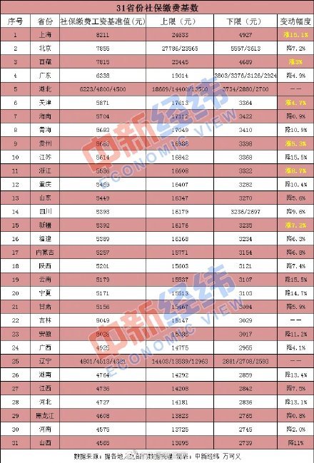 事關收入!31省份公布社保繳費基數:兩地降超15%