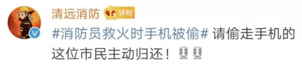 請主動歸還手機,消防員給我們帶來溫暖,請不要讓他們心寒。