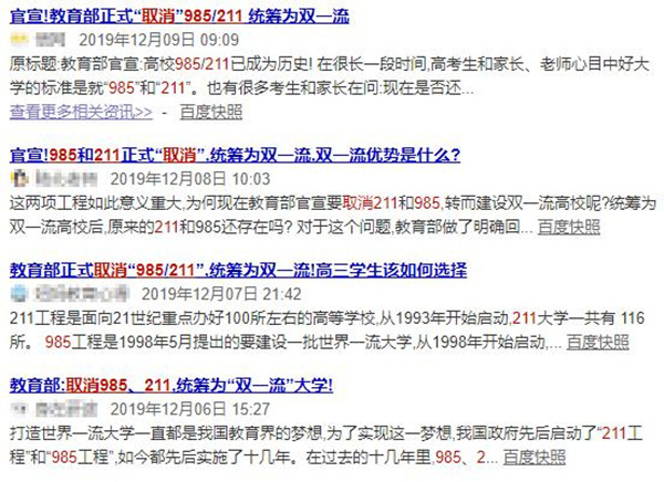 隨后這則消息被外界解讀為“官宣:985、211工程被取消”,緊接著相關消息及文章在網上被瘋傳,引發廣大網友熱議。但仔細閱讀教育部回復就能發現,教育部用的是“統籌為”,而非“取消”。可以說,這兩項曾經的國家高等教育重點建設項目已經完成了上一階段的歷史使命,將“接力棒”交到了“雙一流”建設手中。將教育部回復理解為“取消985、211工程”顯然有失偏頗。