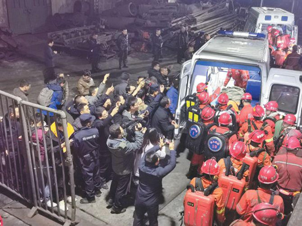 事故發生后,按照救援計劃,救援人員分為 4 個救援梯隊,輪流進行巷道清淤,打通救援通道。