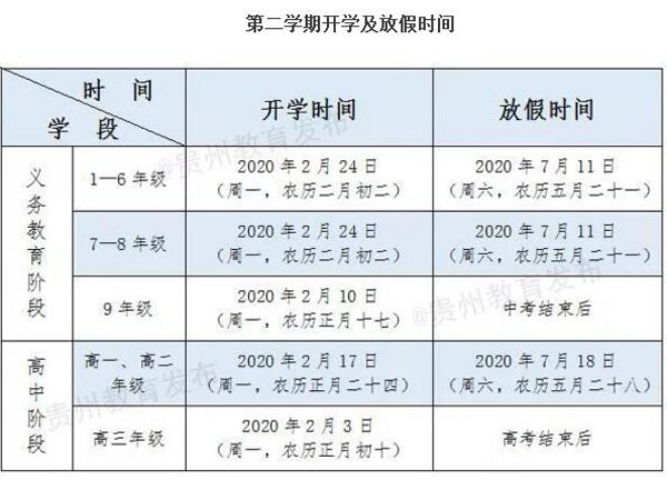 5月13日,記者從貴州省教育廳獲悉,2019-2020學(xué)年度全省中小學(xué)開學(xué)、放假時(shí)間已確定。