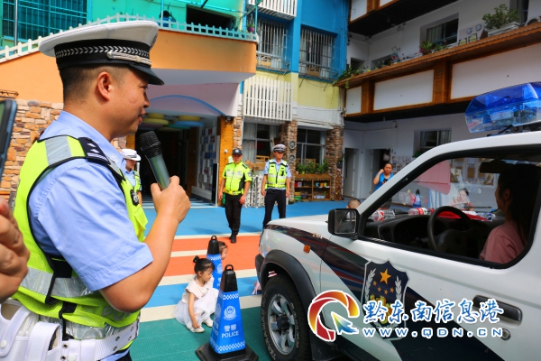 據(jù)介紹,當天活動的主題是“平安上學(xué)路·交警共童行”,交通民警根據(jù)幼兒交通安全意識淡薄,自我保護意識不強,遇事應(yīng)變能力和判斷力差等特點,通過看圖說話、互動問話、模擬現(xiàn)實的方式,向小朋友們介紹了汽車盲區(qū),告誡他們一定不要在車輛旁邊玩耍;給小朋友們介紹了交通標志和交通信號燈,引導(dǎo)小朋友過馬路時要看信號燈、要走斑馬線;不要在路邊玩耍嬉戲追逐打鬧,不翻越護欄,不爬車追車,乘車要系好安全帶等,讓孩子們輕松領(lǐng)會了交通常識和粗淺的交通法規(guī)。