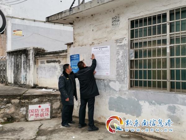 羊坪鎮(zhèn)綜合執(zhí)法大隊(duì)工作人員到張貼公告