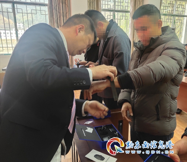 入矯宣告會上,從江縣司法局社區(qū)矯正管理股股長對今年新進(jìn)社區(qū)矯正人員宣讀了社區(qū)矯正宣告書,同時要求社區(qū)矯正人員的擔(dān)保人必須做到擔(dān)保義務(wù),保證社區(qū)矯正人員在服刑期間遵紀(jì)守法。宣告結(jié)束后,工作人員給2020年新入矯的10名和不服從管教的2名社區(qū)矯正人員佩戴電子手環(huán),并及時為社區(qū)服刑人員設(shè)置“電子圍欄”,確保社區(qū)服刑人員在可控范圍內(nèi)活動。