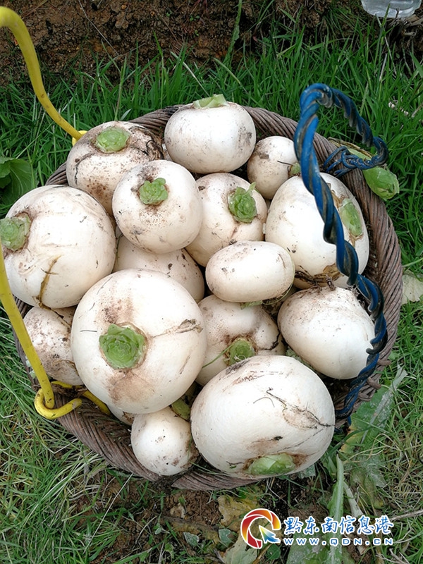 每年11月,秋收后休整了一個多月的田間又熱鬧起來了,翻地打窩播種忙得不亦樂乎,用當地的話來講叫做“農忙第二季”,秋收后種蘿卜已成為洛香鎮該鎮村民鼓起錢袋子的又一門路,通過村“兩委”與貴州君安高貿食品文化置業有限公司合作,簽訂種植收購合同,由村里提供田地,公司負責種子發放和0.5元/斤穩價回收,成功走出了一條“農戶+村‘兩委’+公司”的抱團發展模式,給該鎮戰勝貧困注入了力量。