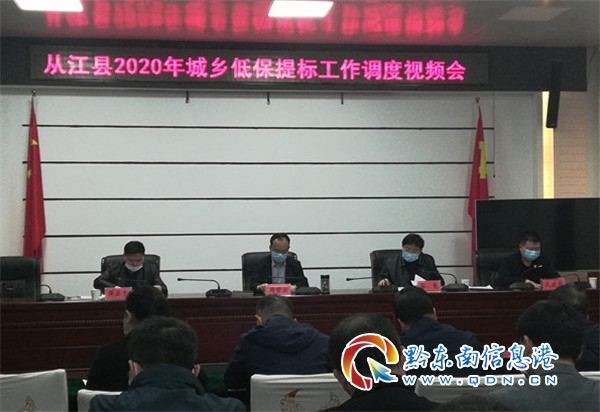 會上縣民政局梁仲權同志宣讀了《關于切實做好城鄉低保入戶核查和民主評議工作的緊急通知》和通報了當前從江縣城鄉低保提標工作進度,州民政局張憲副局長從州級層面,結合我縣脫貧攻堅工作實際對我們農低保提標工作作了精準的指導、提出了明確的要求,周哲云縣長從三個方面對低保提標工作講話。
