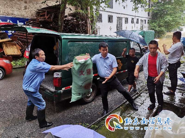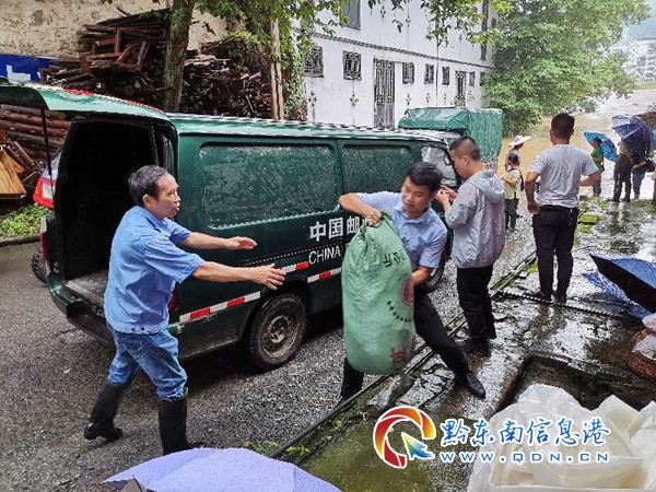 “迪軍,縣城水位大漲,我家一樓被淹了就快淹沒到二樓了,我一個人搬不快,快找人來幫幫我...... ”家住從江縣城大碼頭旁的戴金民,因縣城持續強降雨,都柳江水位迅速上漲,已經淹到他房屋樓下。他第一時間撥通了在郵政工作的親戚押運大隊副大隊長廖迪軍的電話。“你別急,我馬上找人來幫忙。”正在上班的廖迪軍立即想到了找單位幫忙,并向從江縣分公司黨支部書記王大軍匯報情況請求支援。接到求助后,王大軍同志立即作出指示:要求綜合辦馬上組織黨員干部、后臺行政人員、投遞員趕赴現場協助搶險......