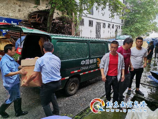 災情就是命令,為民服務郵政人義不容辭。接到通知后,從江郵政11名郵政人立即放下自己手上的工作,前往戴金民家住處幫忙。到達現場后,發現洪水上漲迅猛,水已經快淹到所住的二樓。這時,雨還在噼里啪啦地下著,觀察附近也沒有可暫時安全存放貨物的地方,從江縣分公司綜合辦主任石家文立即調來3輛郵政面包車,負責將受災的貨物拉到安全地帶。就這樣不到半小時,從江郵政人連同著百姓手搭著手快速將家用物品轉移到地勢更高的安全地帶,經過半個小時的時間搶搬,受災群眾的物品已經全部裝車運送完畢。