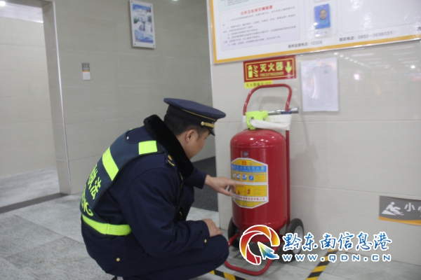 路政員對服務區消防設施進行檢查