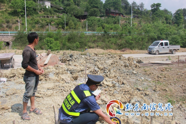 2020年5月9日上午,丹寨路政執(zhí)法大隊(duì)路政員巡查至S62余冊高速K81+000下行右幅(凱里往黃平方向,凱里市境內(nèi))的香爐山村時(shí)發(fā)現(xiàn)距離高速公路不遠(yuǎn)處有村民正在修建房屋基礎(chǔ),經(jīng)路政員勘驗(yàn)測量,房屋基礎(chǔ)最近端距離高速公路用地25米(在高速公路建筑控制區(qū)內(nèi)),其中有一部分已在高速公路建筑控制區(qū)內(nèi),違反《中華人民共和國公路法》《公路安全保護(hù)條例》及《貴州省高速公路管理?xiàng)l例》的相關(guān)規(guī)定,屬于違法建筑。