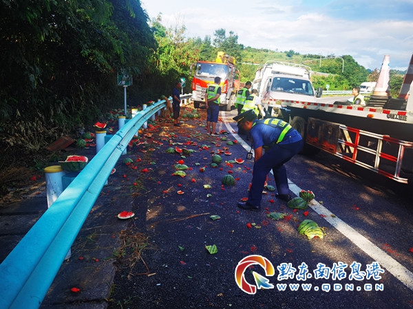 17時20分,路政員到達現場,發現一輛貨車側翻在匝道上,地上散落著西瓜,幾乎鋪滿整個匝道,所幸無人員傷亡,且當時處于周末返程高峰期,車輛不時的從旁邊通過,情況十分緊急,處置不當很有可能會發生二次事故。見此情況,路政員立即聯合現場相關單位一起對事故現場進行道路安全渠化。開展救援的第一步就是“挽救”西瓜,減少貨主損失,路政員幫助駕駛員挑選完好的西瓜,并組織養護站工作人員及時對路面進行清理,應急救援中隊工作人員對貨車開始施救,17時50分,在轄區“一路三方”的共同努力下,救援結束,快速恢復道路正常通行。救援結束后路政員向駕駛員了解情況,駕駛員說:“在進入匝道的時候車速較快,導致車輛失控發生側翻,好在系了安全帶才沒有受傷。現在不僅生意沒有做成,還虧了車上兩噸的西瓜,十分后悔。”