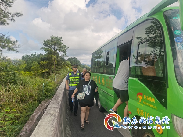 經路政員現場了解,這是一輛從遵義茅臺機場出發途徑荔波再駛入黔東南的組團旅游車,現正前往西江千戶苗寨,車上共有14名游客和1名駕駛員,在行駛到S62余冊高速K141+000下行時客車突發故障導致車輛熄火無法繼續前行,因天氣較為悶熱,部分游客情緒比較激動。路政員現場安撫游客情緒,將車上游客全部疏散至安全區域,并與駕駛員溝通后確定該車輛無法及時修復。情況了解清楚后,路政員立即聯系“一路三方”前來共同救援,隨即聯系丹寨縣客車站安排車輛到現場對乘客進行轉移,“一路三方”到達現場后,立即對故障現場做好渠化。30分鐘后轉運車輛到達現場,將滯留游客轉移,轉移途中又有了歡聲笑語。