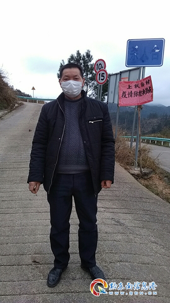 從正月初三到現在,廖尚杰每天堅持在上楓香村老寨路口認真做好疫情防控執勤工作。(陶武勇)