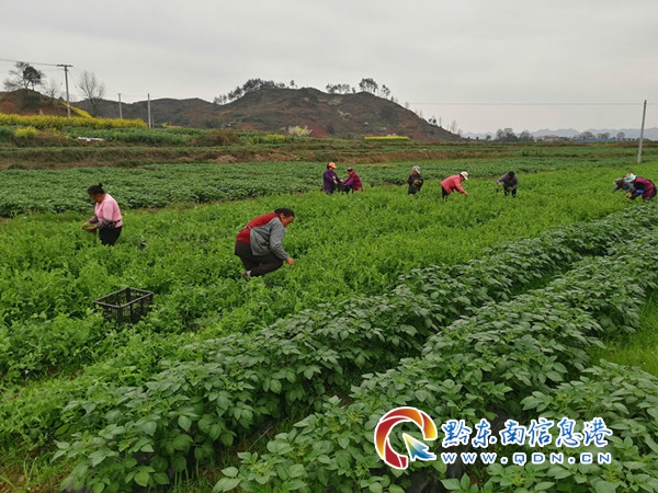 貧困戶正在田里摘豌豆尖