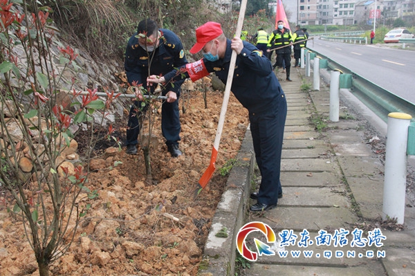 本網訊 一個綠色的夢想又一次在三月醞釀,一個綠色的希望又一次在今天啟程。今天又是一年一季的植樹節,為了進一步提高廣大職工的環保意識和文明素質,認真踐行雷鋒活動精神。黃平路政執法大隊聯合轄區“一路三方”開展了“相約綠色,與春天同行”義務植樹活動。