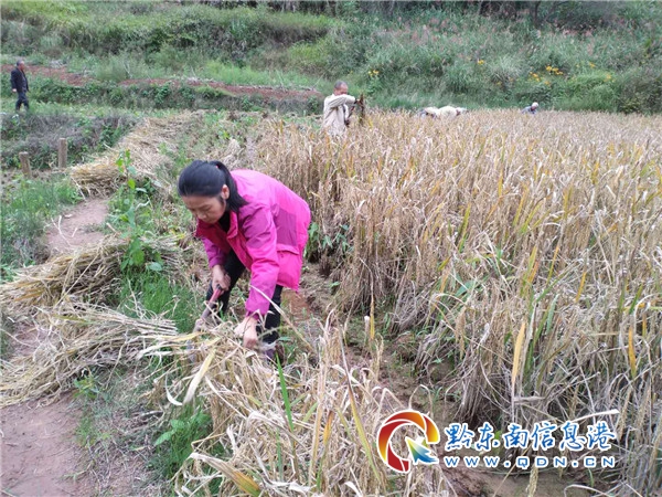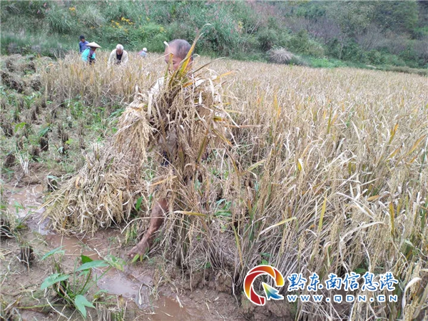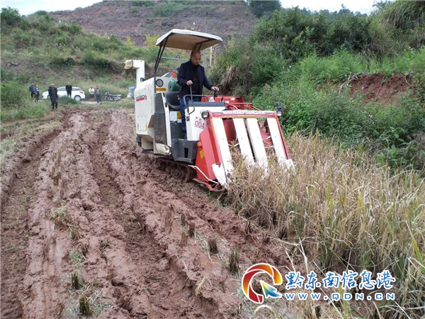 就在楊光榮夫妻倆為稻谷收割的事情發愁時,平西壩村脫貧攻堅副隊長和村支書帶領脫貧攻堅工作組全體攻堅隊員、村干部來到他家稻田里,沒有脫谷工具,在平西壩村富民農機專業合作社的幫助下,支持一臺收割機開展收割工作。因稻田都是火罐田,陡坎大,收割機無法繼續正常開展工作下去,無奈,脫貧攻堅工作隊的干部和村干部們,只好采取人機結合的辦法進行。他們拿著鐮刀,挽起褲腳,下田就舞了起來。女同志負責割稻谷,男同志有的抱谷把子、遞谷把子喂收割機脫谷,有的扛谷子到公路邊裝車,熱鬧得很。