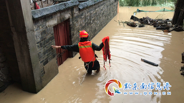剛結(jié)束救援,凌晨5時(shí)53分,劍河縣仰阿莎消防救援站再次接到劍河縣岑松鎮(zhèn)政府報(bào)警:由于強(qiáng)降水導(dǎo)致集鎮(zhèn)上7名群眾被困,請(qǐng)求消防員前往營(yíng)救。接警后,消防救援人員立刻奔赴現(xiàn)場(chǎng)。