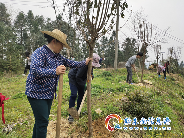 “廠里還沒開工通知,正好遇上政府發放樹苗給村里搞綠化,美化環境,駐村干部們都跟著老百姓一起干了,我也出一份力!”村里因受疫情影響暫不能外出務工的年輕人彭正輝滿頭大汗,正努力揮著鋤頭培土。“這一片樹苗的澆水工作以后我負責了,保證完成任務!”村民彭大淵主動請纓負責起家門口一片樹苗的澆水和看護工作。“這是香榧,聽駐村干部們宣傳,這是名貴的中藥材,果實能賣上百塊錢一斤!”“門口栽兩棵櫻花,正好當風景樹!” 群眾你一言我一語難掩喜悅之情。