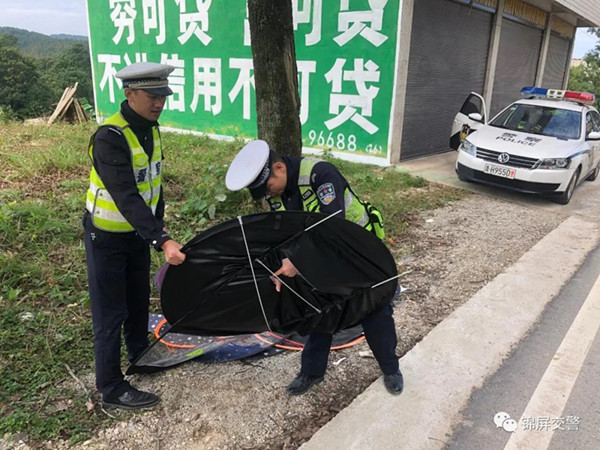 交警提示:電動車、摩托車非法加裝遮陽傘、遮陽棚會遮擋騎行者視線,大風天氣,還易致車輛失去平衡,若發生交通事故,更有可能被鋼制的傘架傷及身體,甚至危及生命等。