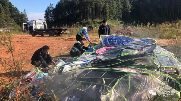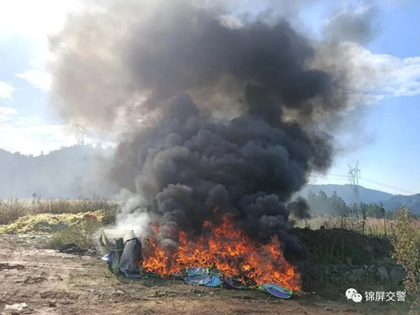 10月19日,錦屏交警集中銷毀了整治行動以來大隊收繳的摩托車、電動車非法加裝傘具1200余件。