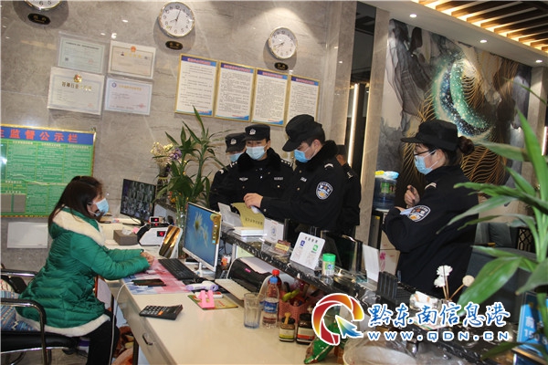 2020年12月7日晚,錦屏縣公安局在組織人員進(jìn)村入戶走訪群眾的同時,在全縣開展治安整治“夜查”集中統(tǒng)一行動。行動中通過設(shè)置治安卡點(diǎn) “嚴(yán)守”、場所整治“嚴(yán)查”、違法犯罪“嚴(yán)打”和隱患 “嚴(yán)控”的方法開展工作,對全縣轄區(qū)內(nèi)所有的賓館、網(wǎng)吧、茶館、KTV、足浴店等場所進(jìn)行逐一檢查。