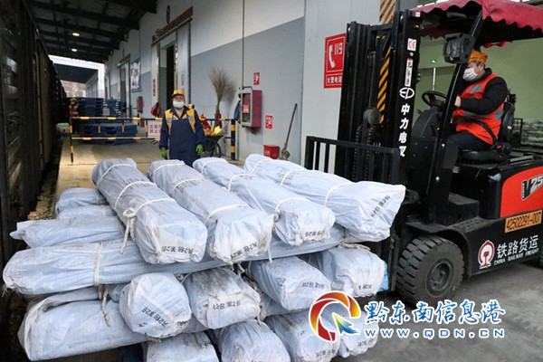 為確保這批捐贈(zèng)物資順利發(fā)送到黔東南自治州、黔南州、銅仁市,凱里站在摸清貨物詳細(xì)情況,有針對(duì)性制定卸車方法,提前安排人力,確保各環(huán)節(jié)緊密銜接,落實(shí)裝卸、人身安全、貨物堆碼等事項(xiàng),啟動(dòng)站區(qū)協(xié)調(diào)緊急方案,10多名鐵路裝卸工人積極主動(dòng)參與搶卸搶運(yùn),用最短時(shí)間完成卸車。