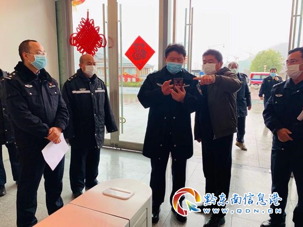 在高鐵南站出站口,楊秀澗認真聽取了凱里經(jīng)濟開發(fā)區(qū)公安分局局長李勇對疫情防控工作開展情況的匯報。隨后,楊秀澗對南站防疫檢查點天網(wǎng)視頻圖像系統(tǒng)、二維碼快速登記系統(tǒng)、音視頻應急指揮調(diào)度系統(tǒng)進行了檢查;并詳細了解防疫措施落實情況,對凱里經(jīng)濟開發(fā)區(qū)公安分局高度重視疫情防控工作并采取一系列有效措施予以肯定。