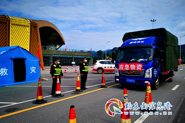 剛剛完成交接班,一輛掛有“應急物資”橫幅的車輛就駛入了待檢通道,車上裝載醫用手套、消毒酒精等物資,是廣東某企業支援貴陽的抗“疫”醫療器材。
