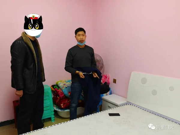 接到報案后,凱里市公安局高度重視,立即指令刑偵大隊、網安大隊共同對案件開展偵破,經過辦案民警連續多日的調查分析,發現遵義市桐梓縣的一名叫游某康的男子有重大嫌疑。得到確認信息后民警立刻趕到遵義市桐梓縣,經過周密部署,2月21日下午兩點,在桐梓縣公安局的大力支持下,犯罪嫌疑人游某康在家中被抓獲。
