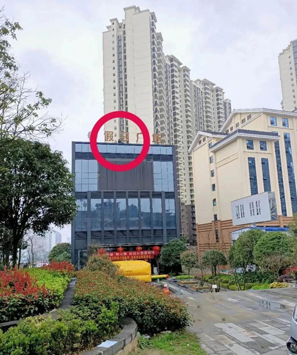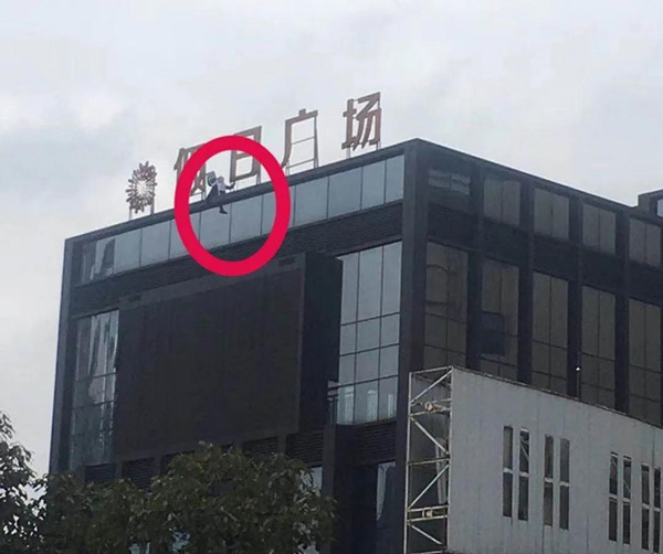 (一中年女子爬上凱里文化北路假日廣場售樓部樓頂上,搖搖欲墜)